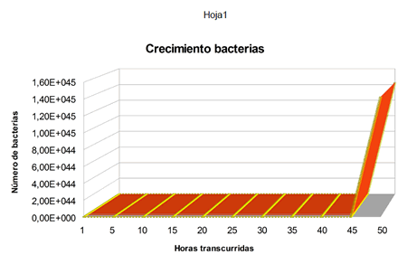 Las bacterias en un entorno adecuado, con alimento suficiente, se dividen muy rápidamente. Pensemos por un momento que en nuestro organismo se introduce una bacteria perjudicial, por ejemplo, la que produce una diarrea. Pensemos que se duplique cada 20 minutos.