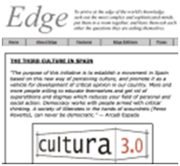 que habló de la presentación en Madrid de Tercera Cultura. Mérito de su sección de Ciencia. Mérito especial cuando se sacan ahora las correspondientes sumas y restas: ¿Cómo es posible que un asunto al que Edge dedica su cover sólo merezca la atención de un periódico español? Y por otra parte. Edge ha publicado su página sin que haya mediado iniciativa alguna para que lo hiciera por parte de los responsables de Cultura 3.0. Lo ha hecho porque tiene un competente servicio de prensa que repasa la actualidad de la Tercera Cultura en un buen número de periódicos del mundo. Lo ha hecho, en fin, porque un periódico en el mundo se había hecho eco de la presentación de Madrid.
