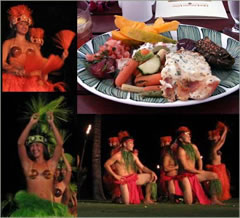 Los platos típicos contienen pollo cocido en leche de coco, envuelto en hojas jóvenes de taro. Probablemente también tenga boniatos, trozos de manzana de la montaña, poi –una salsa hecha con raíces de taro– y trozos de cerdo asados a la manera tradicional polinesia: en un agujero en el suelo en el que previamente se han introducido rocas calientes.